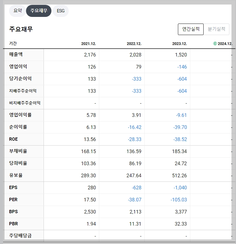 - 2023년 매출액: 1,520억 원 (전년 대비 감소)
