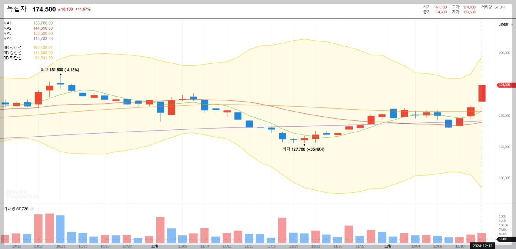 2024년 12월 12일 기준, 녹십자의 주가는 최근 상승세를 보이며 목표 주가 20만 원으로 상향 조정되었습니다. 이는 미국 시장에서의 매출 확대 기대감이 반영된 결과입니다.