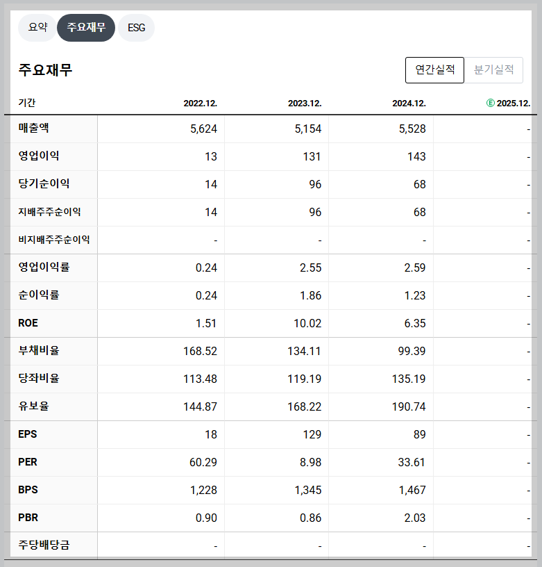 - PBR(주가순자산비율): 0.85배 (자산가치 대비 저평가)