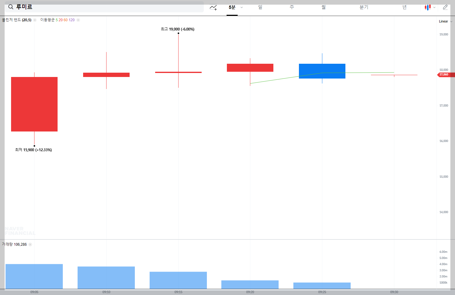 루미르의 주가는 상장 후 변동성을 보였습니다. 상장 첫날에는 공모가 대비 약 43.17% 상승하여 17,250원을 기록했습니다.