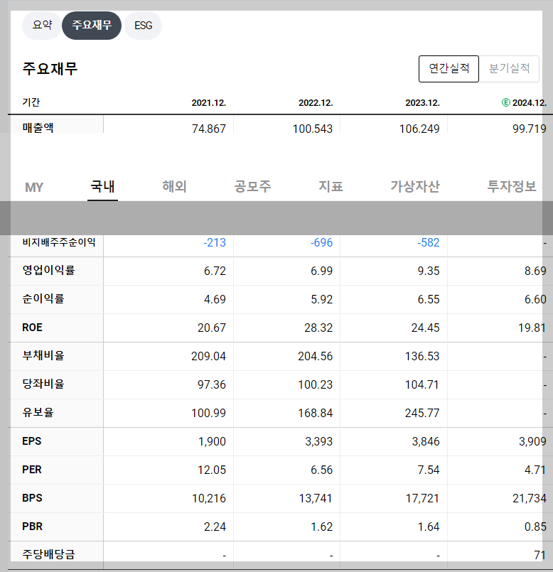 - PBR(주가순자산비율): 1.17 (2020년 기준)
