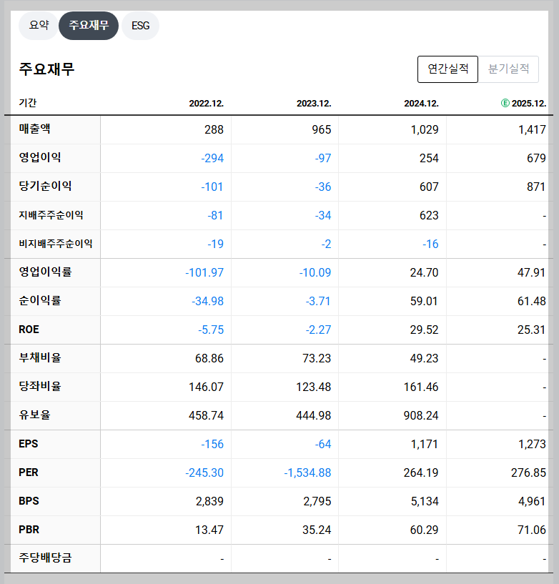 - PER(주가수익비율): 고성장 바이오 기업 특성상 높은 수준