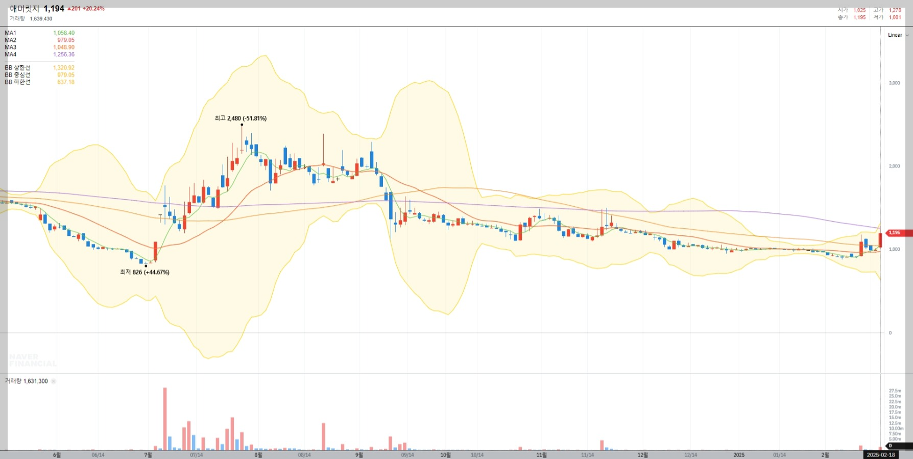 최근 애머릿지는 변동성이 큰 주가 흐름을 보여주고 있습니다. 2025년 2월 초에는 20% 이상의 급등세를 기록했으나 이후 조정을 겪으며 투자자들의 관심이 집중되고 있습니다. 외국인의 순매수 증가와 함께 거래량이 크게 늘어난 점도 눈에 띕니다.
