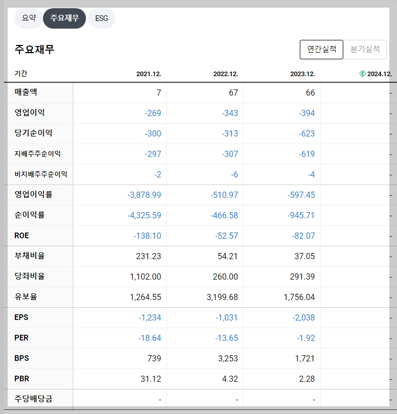 최근 재무 데이터를 보면 매출은 증가했으나 영업 손실과 순손실이 지속되고 있습니다. 부채 비율은 감소 추세에 있으나 여전히 안정적인 수준에는 미치지 못합니다.