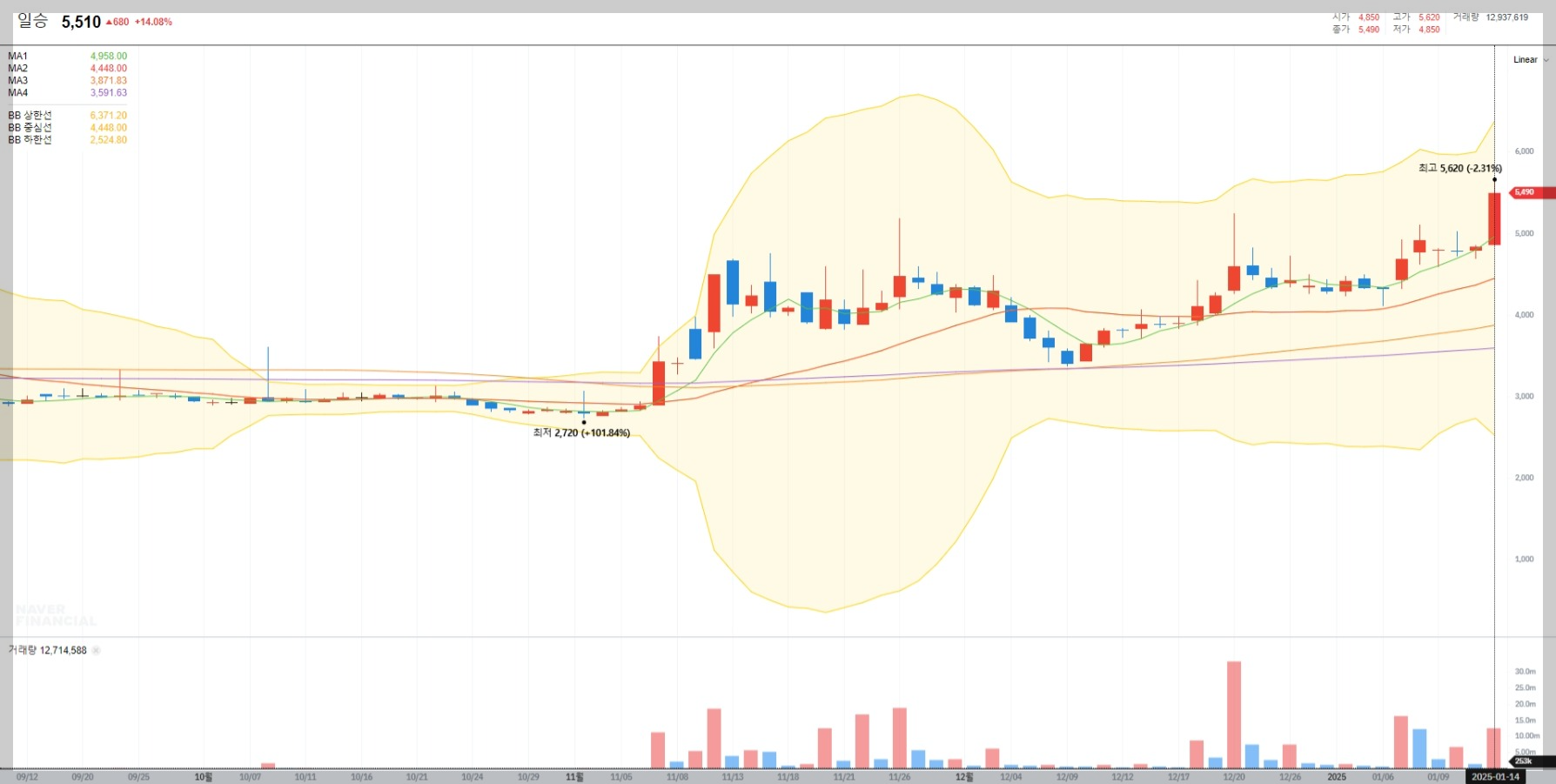2025년 1월 14일 기준으로 일승 그룹의 주가와 재무 상태를 분석하고, 투자자들에게 유용한 정보를 제공합니다. 특히 볼린저밴드 매매기법을 활용한 투자 전략도 함께 살펴봅니다.
