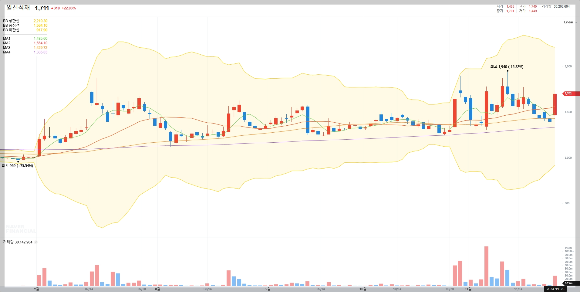 일신석재 볼린저 밴드 매매기법 분석