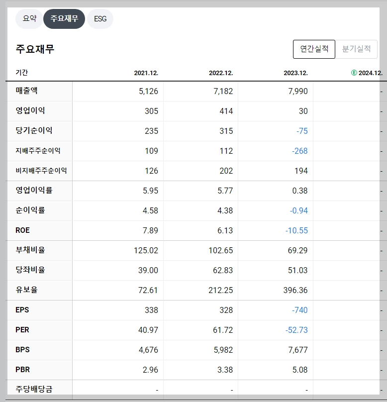 - 2023년 매출액: 7,990억 원 (전년 대비 증가)
