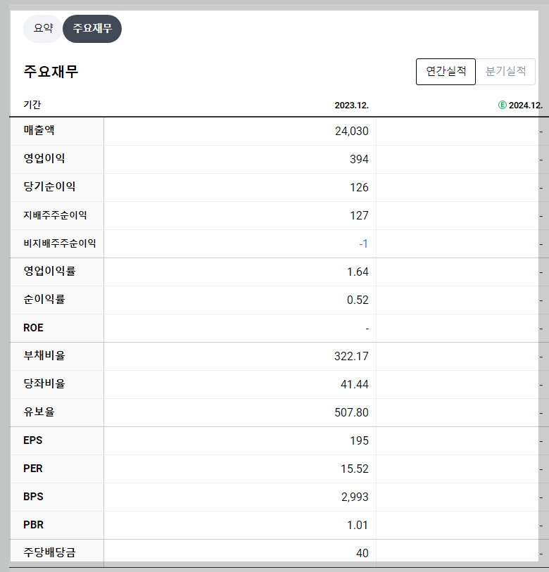 - 순이익: 126억 원 (순이익률: 0.52%)