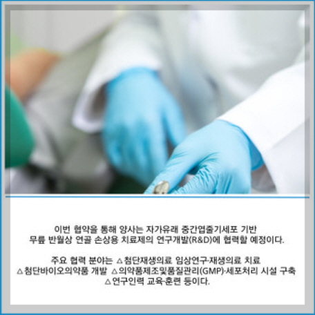 - 줄기세포 치료제 등 바이오 신약 파이프라인, 국책과제 선정 등 미래 성장성 부각