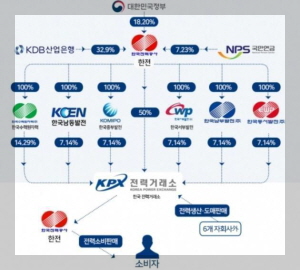 -현재 국내 전력 산업의 체계는 전력생산, 수송, 판매 체계로 이뤄지고 있으며, 동사는 발전자회사와 민간발전회사, 구역전기사업자가 생산한 전력을 전력거래소에서 구입하여 일반 고객에게 판매함. 전기판매부문 사업에서는 구역전기사업자 판매지역을 제외하고 국내 전역에 소비되는 전력량의 대부분을 판매함. 원자력발전사업부문, 화력발전사업부문에서 생산된 전기는 전력거래소를 통해 한국전력공사에 판매됨.