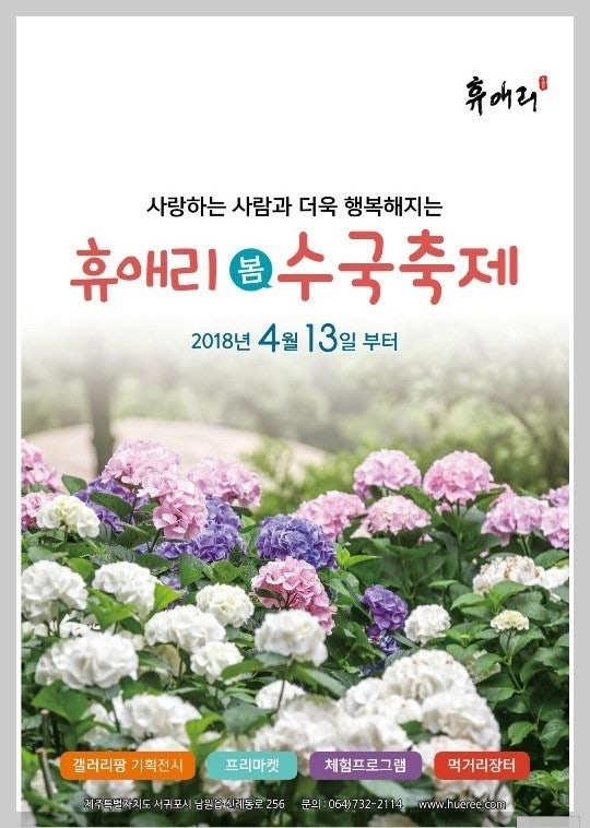 서귀포시 남원읍 신례리에 위치한 휴애리 자연생활공원은 제주도민과 관광객들에게 힐링의 공간을 제공하고자 다양한 프로그램을 준비했습니다. 2025년 봄 수국축제에서는 작년보다 더 풍성한 볼거리와 체험거리가 마련되어 있습니다.