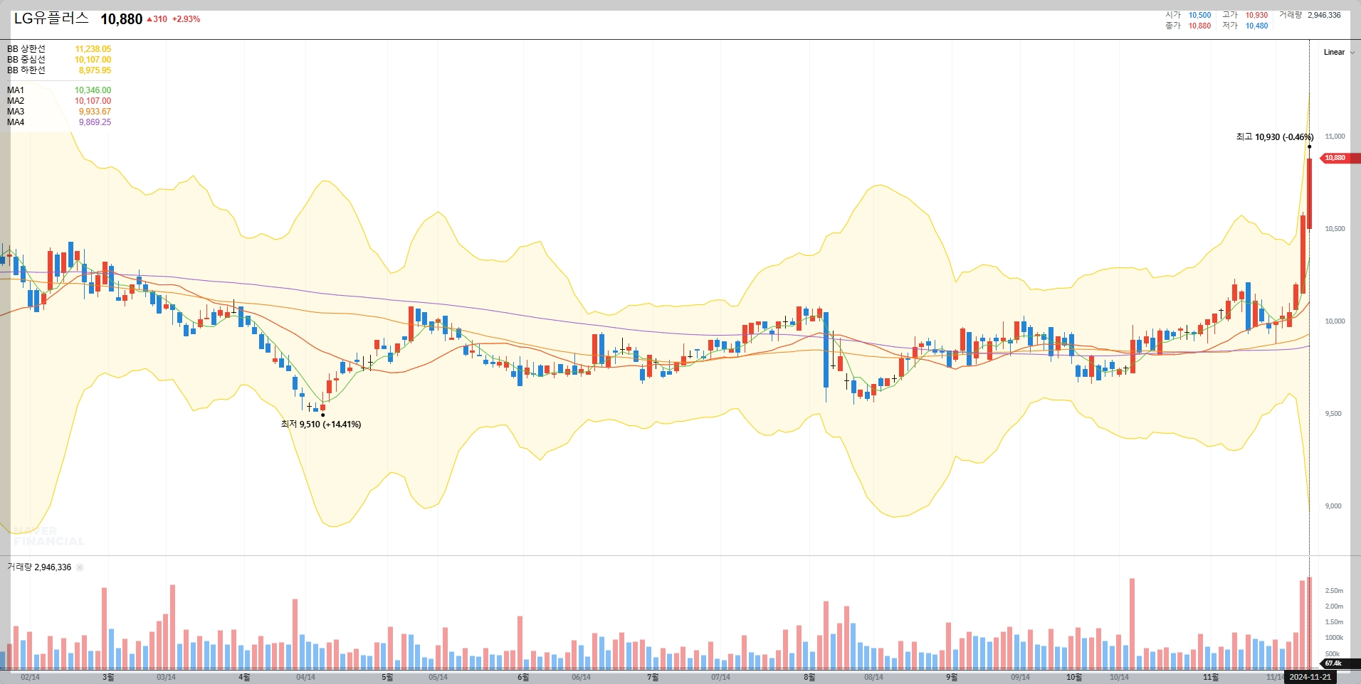 LG유플러스의 현재 주가는 10,880원으로 최근 신고가를 기록하며 상승세를 보이고 있습니다. 이는 밸류에이션 매력과 높은 배당 수익률이 투자자들의 관심을 끌었기 때문입니다.