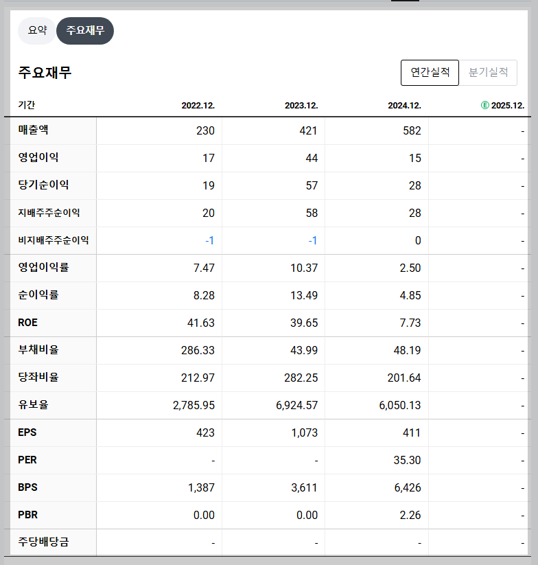 ROE(지배주주)는 39.65%, 부채비율은 43.99%로 재무 안정성이 양호한 편입니다. EPS(주당순이익)는 1,073원, BPS(주당순자산)는 3,611원입니다.
